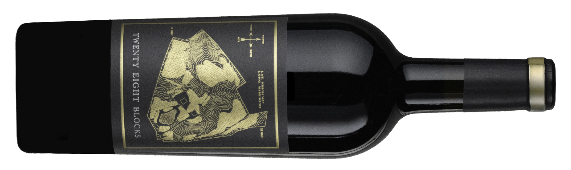 TWENTY EIGHT BLOCKS is 100% Estate Cabernet typically from a single or at most two specific blocks within the entire twenty eight blocks of the vineyard. (we choose the best at harvest) The result can be characterized as an intense Napa Valley Mountain Cabernet, with extreme depth and full-bodied power. Although the specific block showcased that vintage will have its own individual characteristics, we have found the wines to consistently exhibit a backbone of deeply ripe and concentrated fruit with big black cherry and chocolate flavors with black currant, licorice, wild berry and other fruit aromas, including complex coffee, mocha and spice, leading to a long penetrating finish.